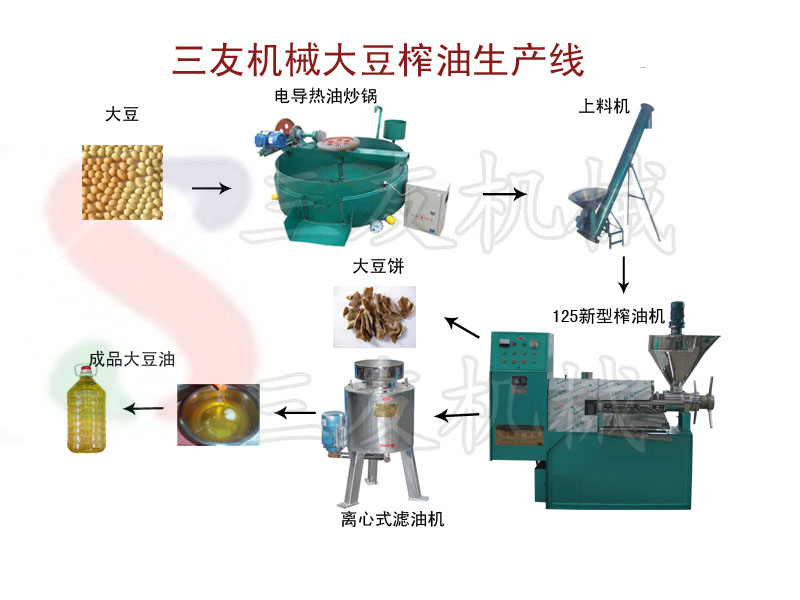 大豆油取自大豆种子,大豆油是世界上产量较多的油脂。大豆油的种类很多,压榨大豆油:大豆经直接压榨制取的油。三友机械*榨油机设备生产厂家,为用户推荐较实惠的大豆压榨油全套设备: